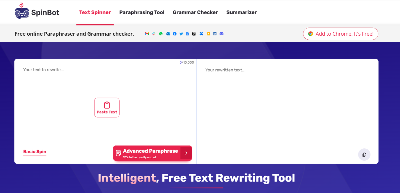 | Spinbot | One-click article spinning | Low | Low | High | Free | Yes | 5.4 |