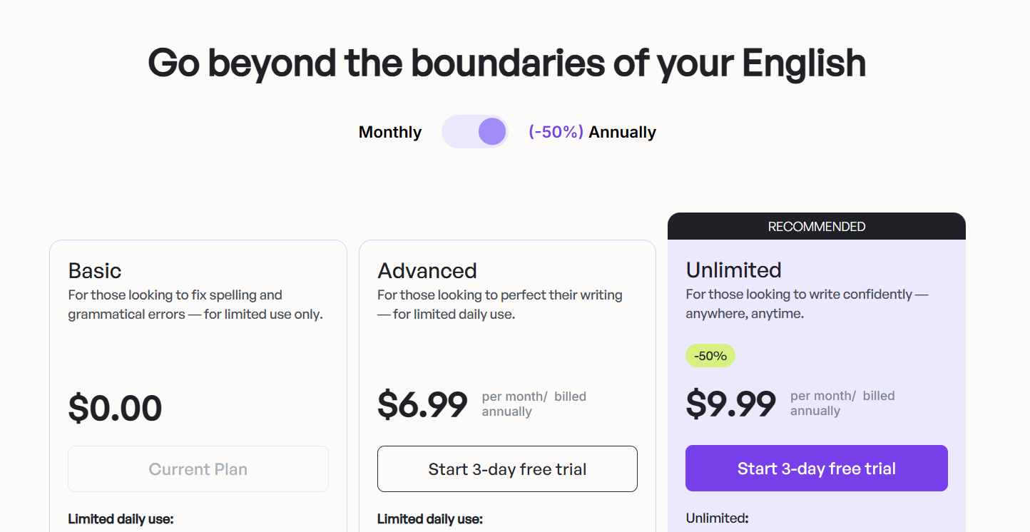 - Limited word credits
